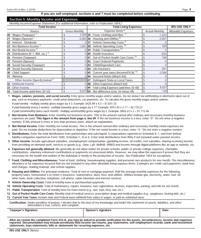 Now that we are in compliance with the IRS, we now need to look into your financial situation and your ability to pay.
